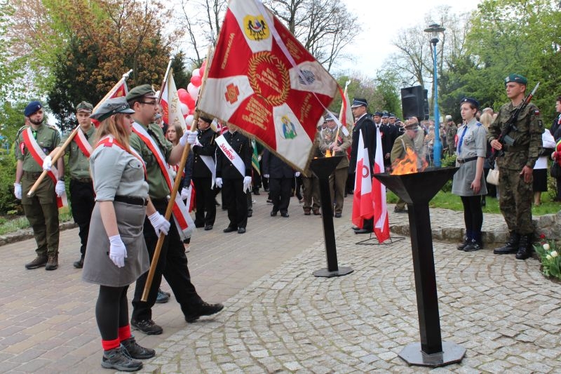 Kwiaty pod pomnikiem Marszałka złożyli radni miejscy i powiatowi, delegacje szkół, przedszkoli, policji, straży pożarnej oraz różnych instytucji i związków zawodowych.