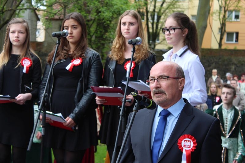 – Jako pierwsi w Europie mogliśmy się szczycić konstytucją. Czasami, gdy słyszę teraz jak ktoś chce nas pouczać, w co mamy wierzyć, co mamy robić i jak mamy żyć to się pytam kto był pierwszy. My byliśmy, jesteśmy i będziemy. jestem dumny z tego, że jestem Polakiem, że biało – czerwona to moja flaga, i jestem dumny, że moi przodkowie dali mi te miejsce w Europie – mówił podczas wystąpienia Adam Myrda.