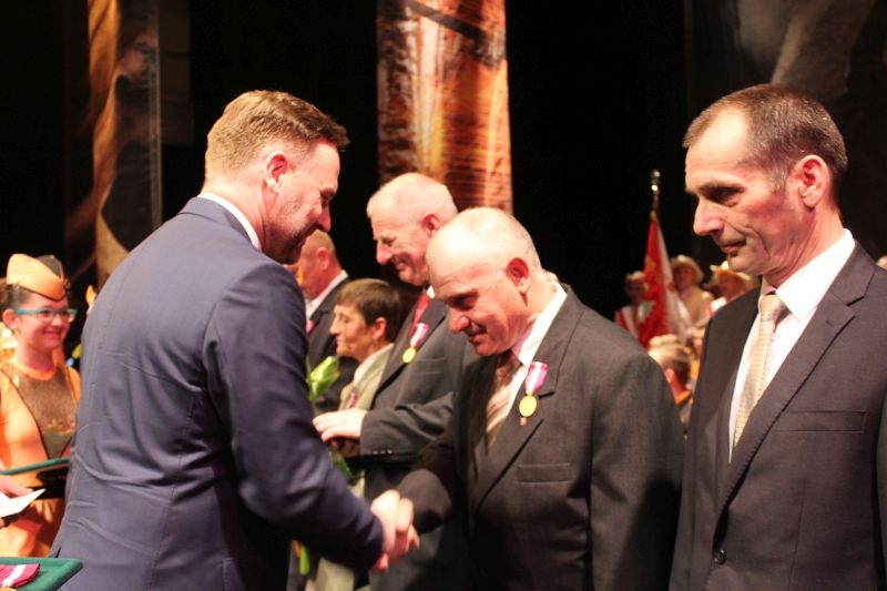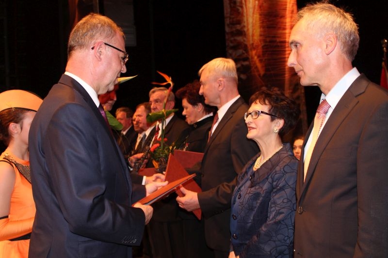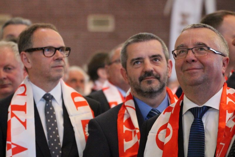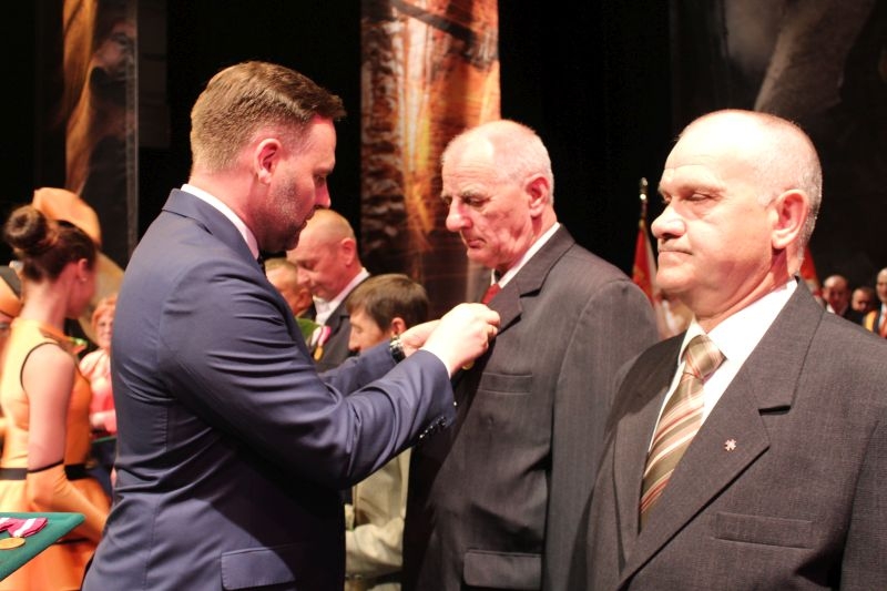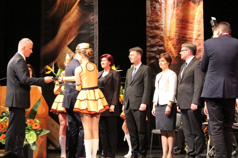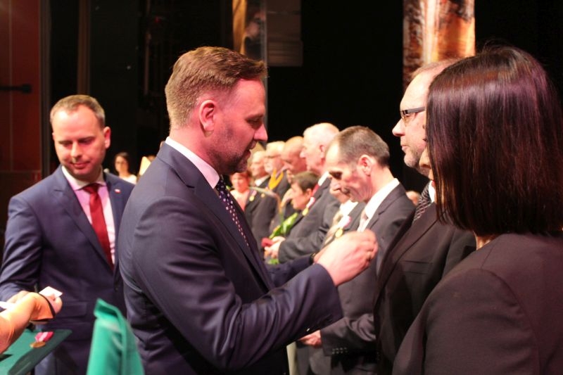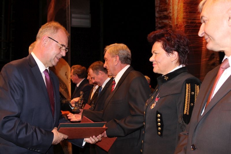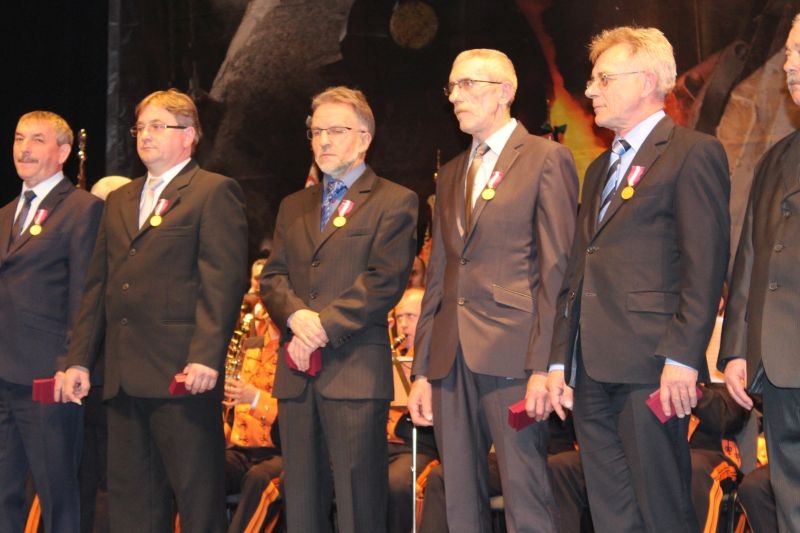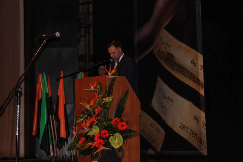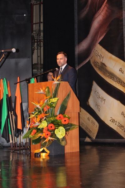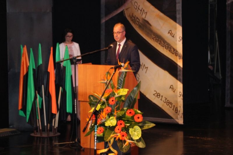 W sali głogowskiego Miejskiego Ośrodka Kultury 6 maja o 14.00 odbyła się Centralna Akademia, podczas której hutnicy i hutniczki z wszystkich hut KGHM Polska Miedź S.A. oraz pracownicy innych oddziałów Polskiej Miedzi odebrali wyróżnienia i odznaczenia. Wręczono również statuetki zwane hutniczymi oskarami, czyli Floriany. Uroczystości dodawała kolorytu orkiestra zakładowa Huty Miedzi Głogów i mażoretki. – Święto hutników obchodzimy w tym roku w szczególnym momencie. Oto bowiem minęło 55 lat od utworzenia KGHM – Kombinatu Górniczo – Hutniczego Miedzi, bo taka była pierwotna nazwa. to był fundament naszej dzisiejszej spółki. Rok 2016 to także jubileuszowy 45 rok istnienia Huty Miedzi Głogów. Jej powstanie było przełomowe dla rozwoju Zagłębia Miedziowego. Dziś także Huta Głogów u progu nowej epoki swojego funkcjonowania. Program modernizacji pirometalurgii realizowany w Hucie Miedzi Głogów I wchodzi w decydujący etap. W IV kwartale zostanie podłączony i uruchomiony piec zawiesinowy. To produkt wysokich możliwości w swojej klasie, spełniający wszelkie wymogi ekologiczne, dający możliwość istotnego zwiększenia zdolności produkcyjnych. Wraz z uruchomieniem nowego ciągu technologicznego mają ulec obniżeniu koszty w samej Hucie Miedzi Głogów i spółce,. Dzieje się to wszystko później niż zakładano. Proces przepinania pieców będzie związany z niezbędnym postojem huty. Cała operacja wymaga od nas koordynacji. nie wątpię w pomyślny efekt. Rozwój spółki a także hutnictwa jest ściśle związany z możliwościami sięgania po nowe złoża zwłaszcza wokół naszych hut o co aktualnie zabiegamy. Ekspansja zagraniczna naszej spółki kreowana przez naszych poprzedników po pierwszych perturbacjach makroekonomicznych z całą brutalną jaskrawością pokazała, że najpiękniejsze wizje muszą się liczyć z realiami szczególnie rynków surowcowych. Pierwsze założenia co do wymaganych nakładów inwestycyjnych oraz kosztów funkcjonowania aktywów międzynarodowych miały być znacząco niższe. Ostatnie cztery lata pokazały, ze tak jak bardzo dobrze radzimy sobie w kraju, tak za granicą realizowane plany nie spełniają oczekiwań. Zastana sytuacja w spółce wymusza na obecnym zarządzie podjęcie zadań zweryfikowania wszystkich długoterminowych planów KGHM, w tym decyzje które zapadły w obszarze ekspansji zagranicznych. Stabilny rozwój bez względu na trudności przed którymi staje zarząd jak i cała spółka to zasadniczy cel który nam przyświeca i który będziemy realizować. Miniony 2015 z punktu widzenia produkcji w grupie kapitałowej KGHM był okresem dobrym . Produkcja miedzi ekwiwalentnej wzrosła o 12%, srebra o 2% pozostałych metali szlachetnych o 34%. Rekordowa też była produkcja miedzi anodowej, 675 tysięcy ton, najwyższa w historii hutnictwa., To wszystko dzięki państwa hutników głogowa, Legnicy i Cedyni pracy. Huta Miedzi Legnica biła w ubiegłym roku rekordy produkcji i nie tylko miedzi, ale też ołowiu i innych cennych metali. huta przetwórcza Cedynia ma za sobą 6 milionową tona walcówki. warto podkreślić, że najbardziej wymagające rynki cenią jakość naszych produktów. Przypał mi wielki zaszczyt i honor w imieniu własnym i zarządu KGHM złożyć gratulacje wszystkim odznaczonym iw wyróżnionym hutnikom., To wy hutnicy Polskiej Miedzi przez swoją wieloletnią pracę tworzyliście i budowaliście pomyślność naszej spółki. Za wszelkie oddanie i pracę na rzecz dobra KGHM Polska Miedź serdecznie dziękuję – mówił Krzysztof Skóra, prezes zarządu KGHM.