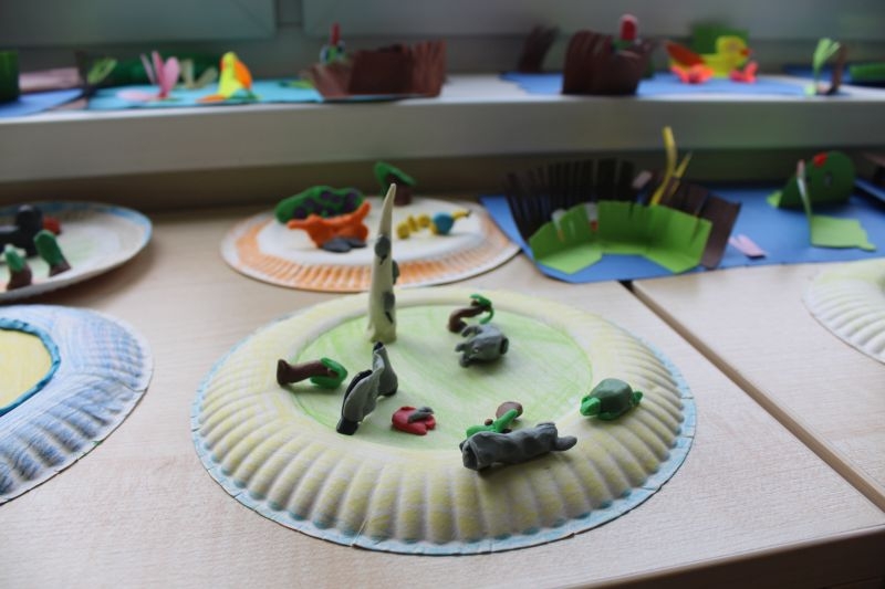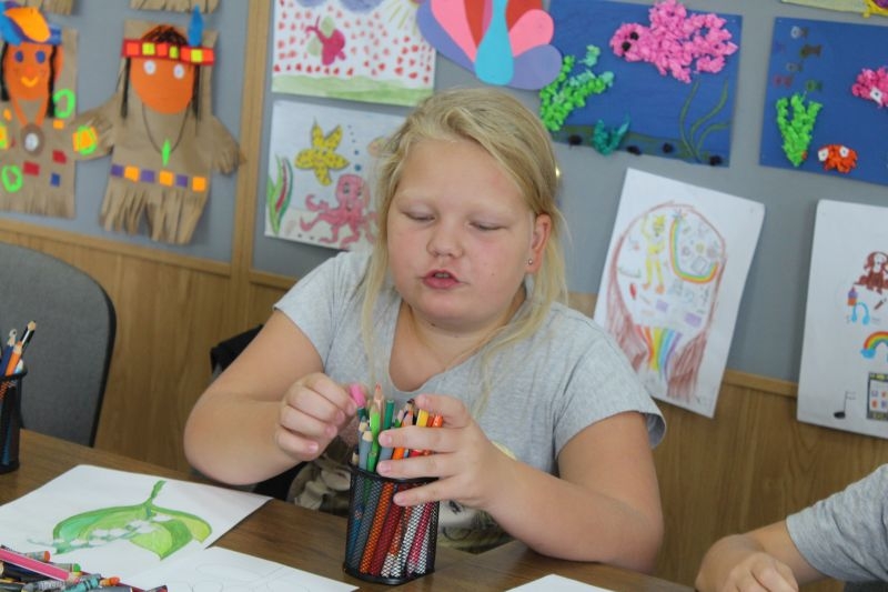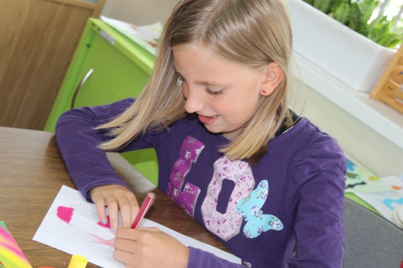 – Dziś kolorowałam, wyklejałam filcem i papierem kolorowym. Nigdy wcześniej nie robiłam też lokomotywy, którą robiliśmy kilka dni temu. Była też lalka z tektury po papierze toaletowym. Można tu czasami też bawić się robotyką.Układamy różne budowle z klocków lego, podłączamy je do komputera, a one się ruszają – mówi Daria Jaworska, 9 – latka z Lubina.