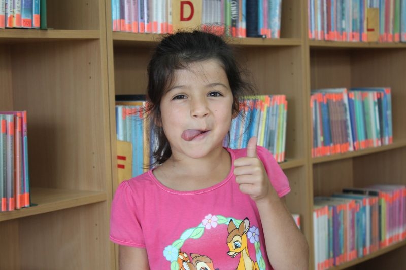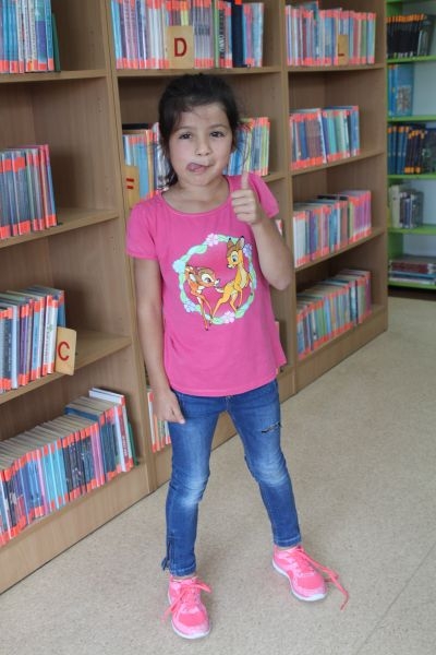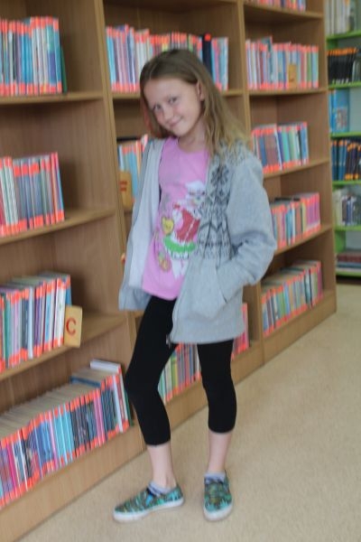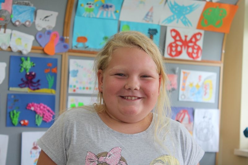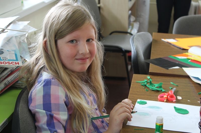 – Jest fajnie, bo chodzę z babcią na spacery i dziadkiem do sklepu, ale najlepsza jest biblioteka, bo tego w Szczecinie nie ma. Dziś robię słonecznik z filcu, kolorowego papieru i rysuję kredkami. Czasami w  szkole robimy na plastyce podobne rzeczy. Byłam tu już kilka razy i zrobiłam dom noca, lokomotywę i wyspę na papierowym talerzyku. Zrobiłam na niej szklaną górę i drzewo z kokosem – mówi Lena szczecinianka, która na wakacje przyjechała do babci.