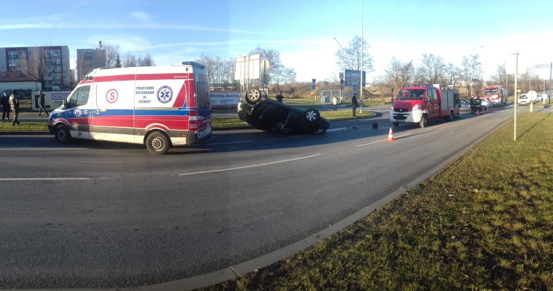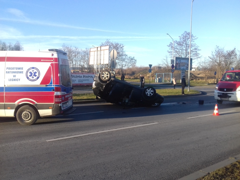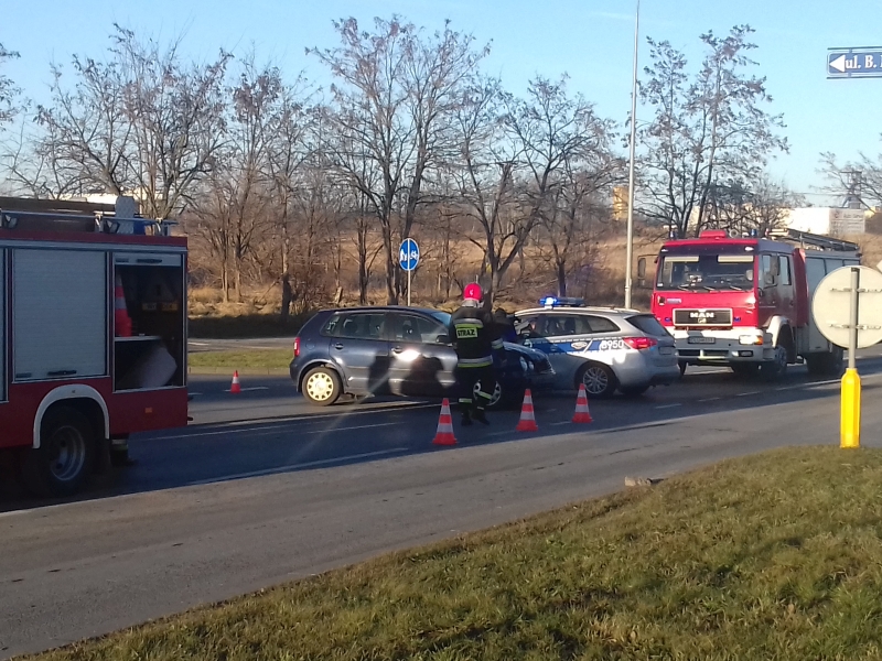 Po godzinie 14 na ulicy Hutniczej doszło zderzenia dwóch samochodów. Z ul. Krupińskiego (podporządkowana) wyjeżdżał volkswagen polo. Kierujący nim mężczyzna nie zachował ostrożności i uderzył w bok przejeżdżającej ulicą Hutniczą toyoty. Zderzenie doprowadziło do dachowania toyoty.