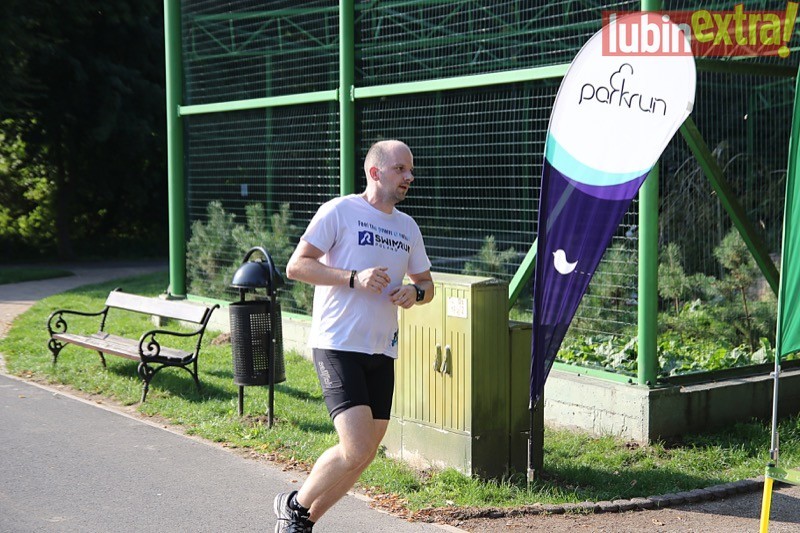 Odwiedził nas pan Paweł Nowak z Wrocławia, który parkrun Lubin wybrał aby tu pobiec po raz pięćdziesiąty. Były gratulacje od pani Eli –  koordynatorki biegu oraz oklaski od uczestników. Mimo dużej rywalizacji w czołówce udało mu się zająć II miejsce z czasem 19:27.