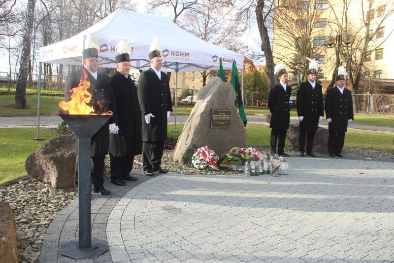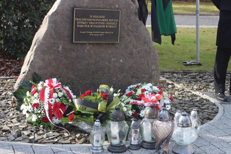 29 listopada, w piątek pod pomnikiem Ofiar Wypadków w KGHM cały dzień składano kwiaty i zapalano znicze. Monument stoi na terenie Centrali miedziowej spółki od trzech lat. Został tam postawiony po tragedii, która miała miejsce 29 listopada 2016, gdy w ZG Rudna życie straciło 8 górników.