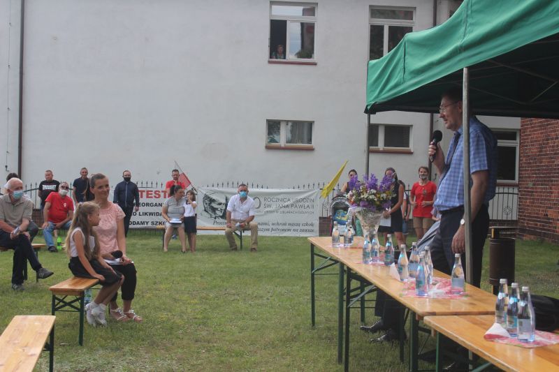 Spotkanie miało mieć miejsce tydzień temu w szkole, ale burmistrz Tomasz Kulczyński odwołał je, powołując się na zagrożenie stworzone koronawirusem. Na spotkanie na otwartej przestrzeni na terenie parafii nie przybył.