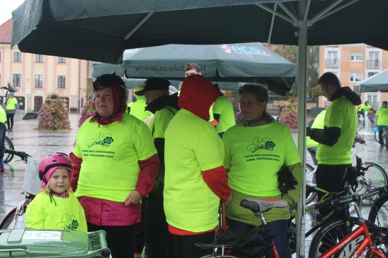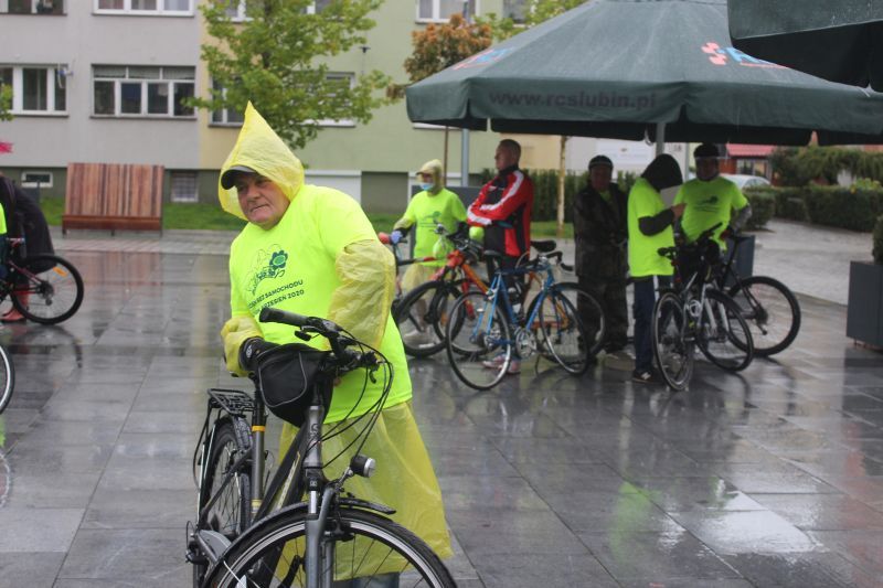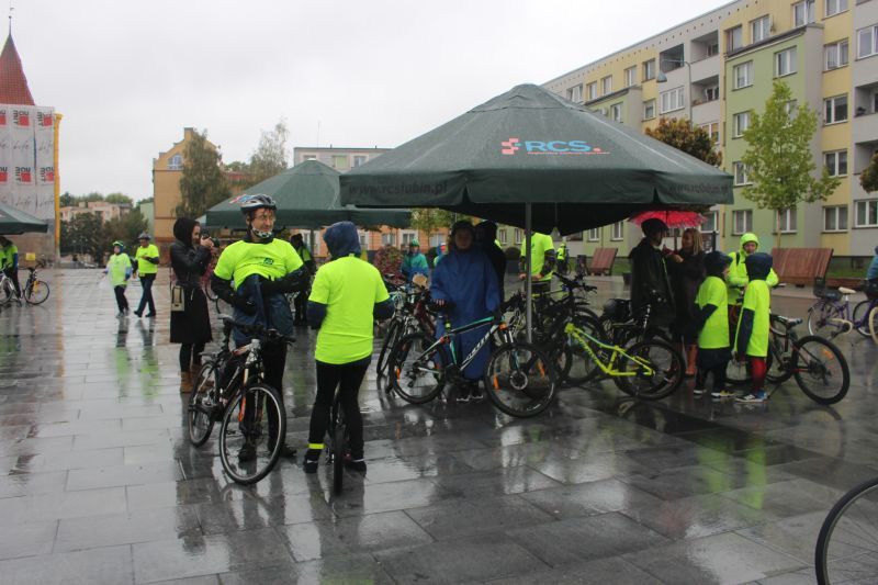 Deszczowa aura nie odpuściła i lubinianie też nie. !20 osób zdecydowało się wziąć udział w przejeździe rowerowym, jaki z okazji „Dnia bez samochodu” przygotowało Regionalne Centrum Sportowe w Lubinie. Rowerzyści na start stawili się w rynku, by pokonać 4,5 km trasę pod eskortą policji.