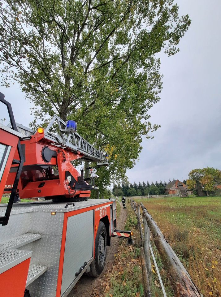 Chociaż akcje straży pożarnej głownie kojarzone są z pożarami i wypadkami komunikacyjnymi, to w dniu wczorajszym strażacy udowodnili, że niosą pomoc nawet zwierzętom. Tak było w Krzeczynie Wielkim, gdzie poza miejscową jednostką OSP do pomocy została skierowana drabina.