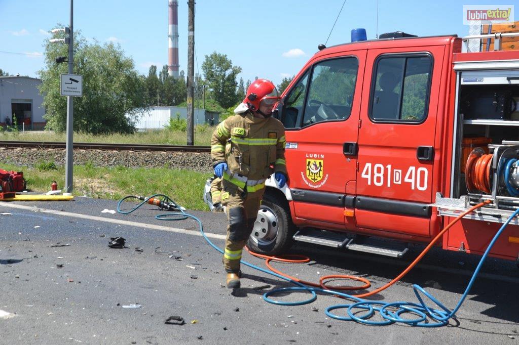 – Jechałem swoim pasem, a ten samochód pojawił się nagle, odbiłem w prawo, ale było już za późno – relacjonuje młody kierowca ciężarówki z naczepą wywrotką, który wjeżdżał do Lubina od strony Legnicy. Uderzenie było potężne przód dostawczego forda został zmiażdżony. Jechał nim 61-letni pracownik jednej z firm ochroniarskich. Strażacy musieli użyć sprzętu ratownictwa drogowego. Mimo tego, że akcja była szybka i sprawna, kierowcy nie udało się uratować, na dawał oznak życia, zginął podczas zderzenia.
