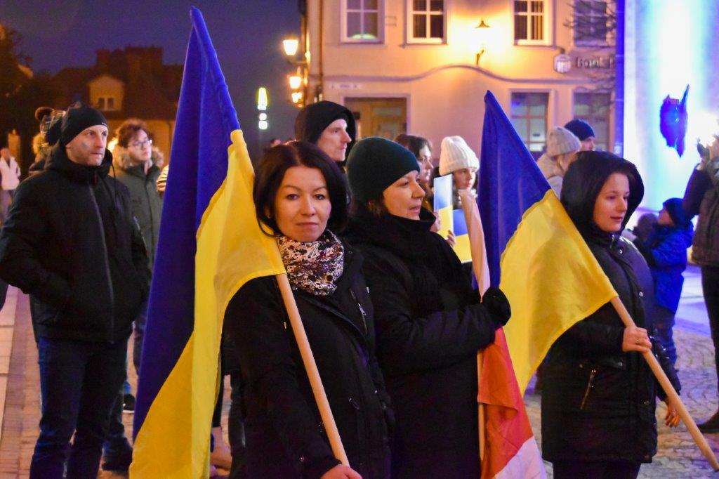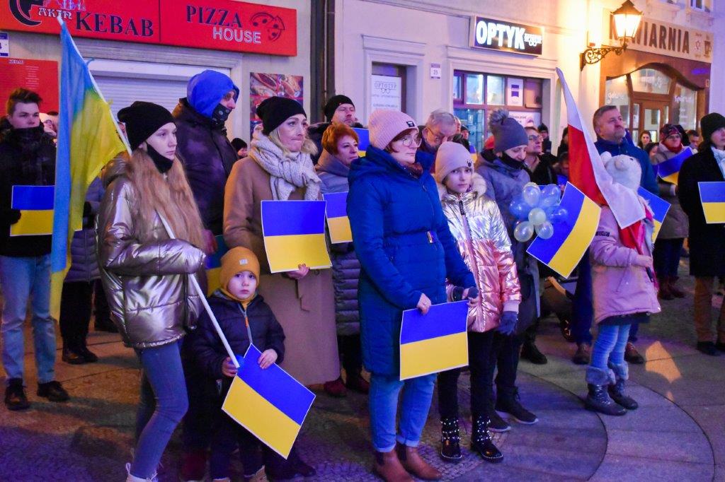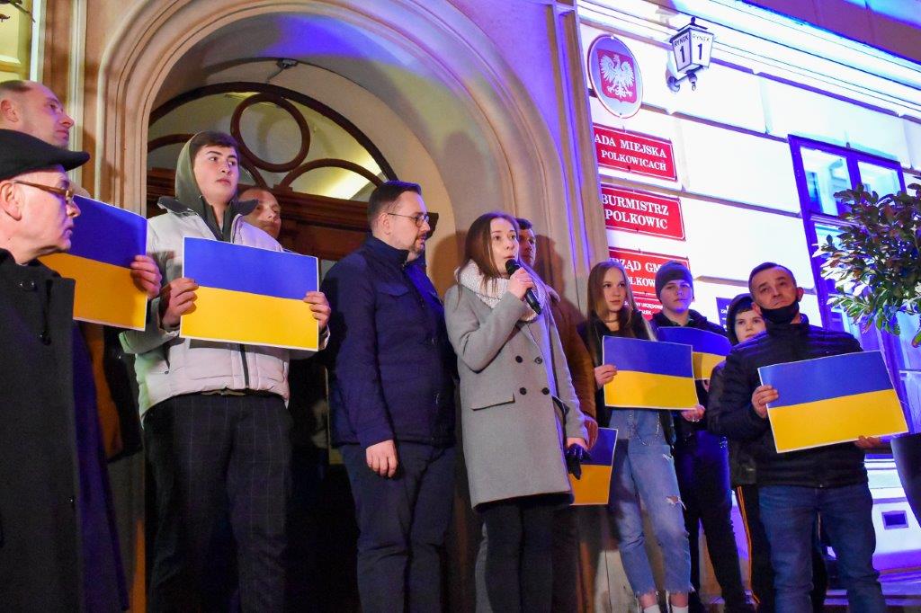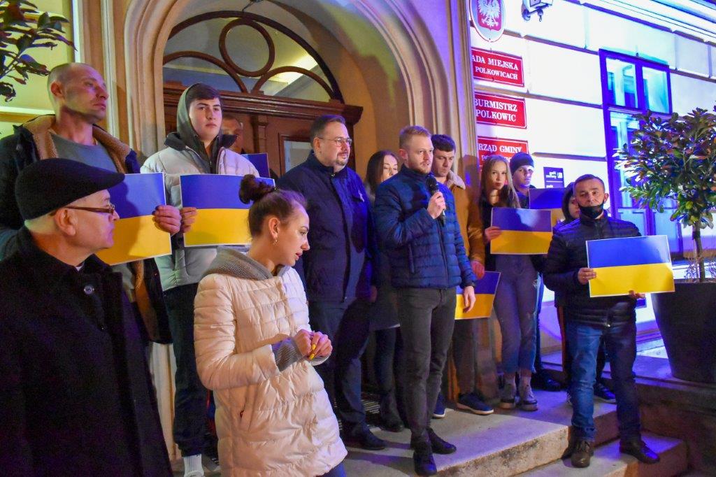 Obecny na wiecu burmistrz Polkowic podkreślał, jak ważne są teraz gesty solidarności z walczącą Ukrainą i dodawał, że w ślad za naszymi gestami idzie realna pomoc dla uchodźców oraz tych, którzy pozostali na Ukrainie. To zbiórki artykułów pierwszej potrzeby oraz przygotowane miejsca pobytowe.