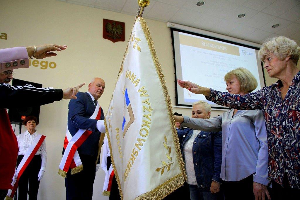 Inauguracja uniwersytetu dla seniorów miała ten sam przebieg, co na prawdziwej uczelni. Po ślubowaniu i odśpiewaniu hymnu „Gaudeamus igitur…” do słuchaczy zwrócili się m.in. rektor Uczelni Jana Wyżykowskiego dr Tadeusz Kierzyk, oraz burmistrz Polkowic Łukasz Puźniecki.