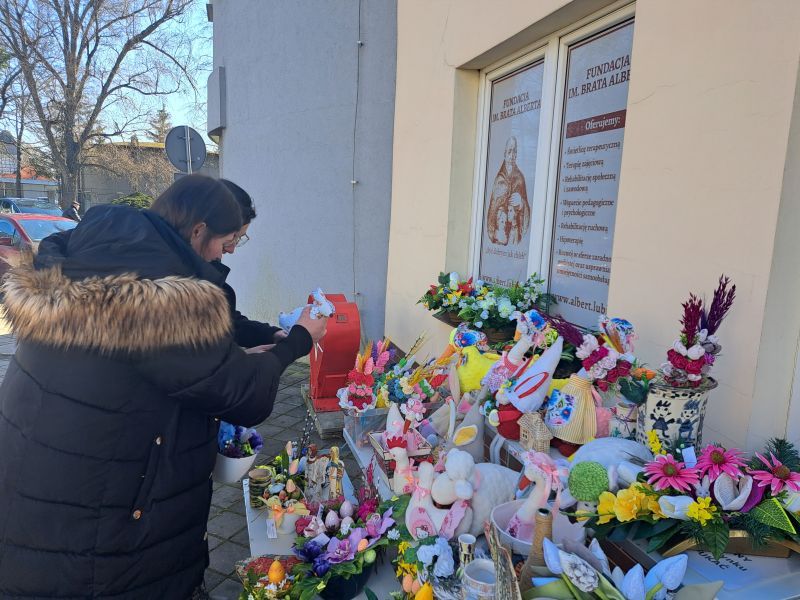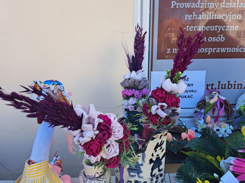 – Wszystko, co przygotowujemy schodzi i rozchodzi się jak świeże bułeczki. Teraz oczywiście palmy wielkanocne cieszą się popularnością. Uczestnicy, za środki pozyskane ze sprzedaży tych prac, pojadą na wycieczkę nad morze. Te stroiki są niepowtarzalne tak samo, jak i my jesteśmy niepowtarzalni. Każdy wykonuje ozdoby indywidualnie. Jesteśmy bardzo szczęśliwi, że te prace trafiają do wielu domów. W ten sposób czujemy się, jakbyśmy byli z lubinianami podczas świąt. Zapraszamy od poniedziałku do piątku od 10.000 do 18.00 przy ulicy Odrodzenia. Będziemy też w kościele św. Wojciecha dwie ostatnie niedziele przed świętami – mówi Monika Tomko-Klubek, kierownik Fundacji im. Brata Alberta w Radwanowicach, WTZ Przytulisko i świetlica terapeutyczna.