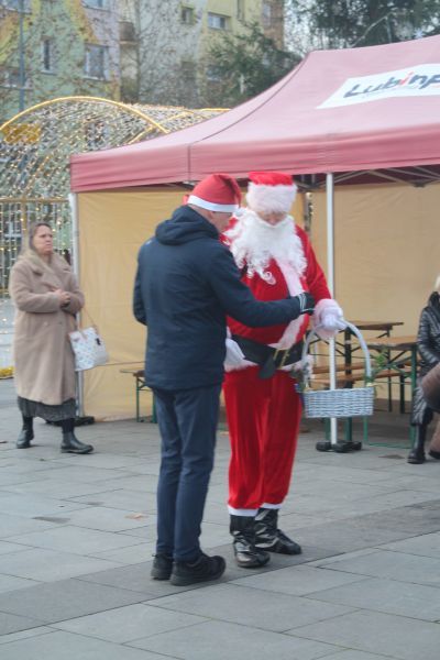 – Dziś spotykamy się niezależnie od tego, czy ktoś obchodzi te święta w związku z religią, czy może obchodzi je jako czas oddechu i relaksu. Wszyscy świętują i dlatego wszystkich zapraszamy. Warto, by mieszkańcy wiedzieli, że to spotkanie bez względu na wiarę czy poglądy jest możliwe dzięki zarządowi Stowarzyszenia Lubin Wspólna Sprawa, Basi Skórzewskiej i Grażynki Klancko. My z Obywatelskiego Lubina jesteśmy tylko do pomocy – dodawała Edyta Zawadzka, radna miejska i współorganizatorka. – Kolejny rok z rzędu trochę nam łatwiej to organizować, bo mamy już doświadczenie. Mieszkańcy mogą zobaczyć też firmy, które nam pomagają. To „Opakowania Tara” czy „Selgros”. „Lubinpex” też nas wspiera zarówno od strony kuchni oraz namiotów. Pomógł nam też hotel Europa. Z roku na rok jest więc lepiej. Lubinianie zapewniają, że to potrzebne w naszym mieście. Dziś mamy kilkunastu wolontariuszy ze Szkoły Podstawowej nr 3 w Lubinie wraz z nauczycielkami. Czujemy się wsparci i widzimy, że to potrzebne. Gromadzimy na tę imprezę fundusze w ciągu roku – mówiła Grażyna Klancko ze Stowarzyszenia Lubin Wspólna Sprawa.