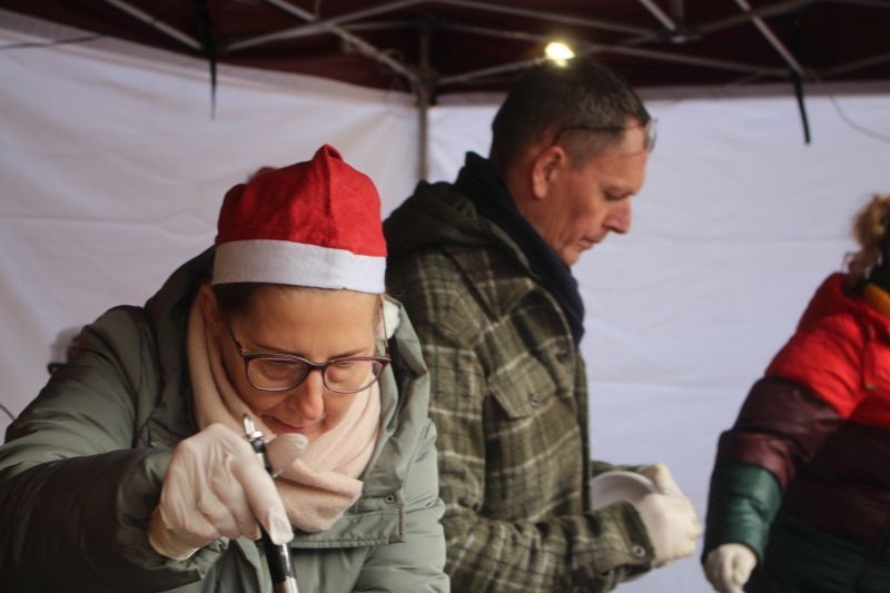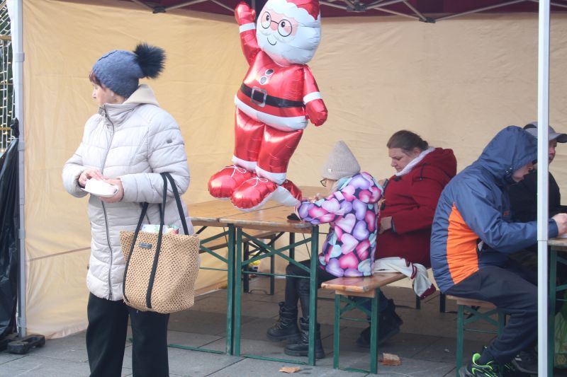 Na płycie rynku nie zabrakło Mikołajów zarówno tych dmuchanych, jak i prawdziwych, rozdających cukierki. Pomocnicy Mikołaja w odświętnych strojach wypełniali talerze smakowitymi potrawami. W rynku pachniało wigilijną wieczerzą.