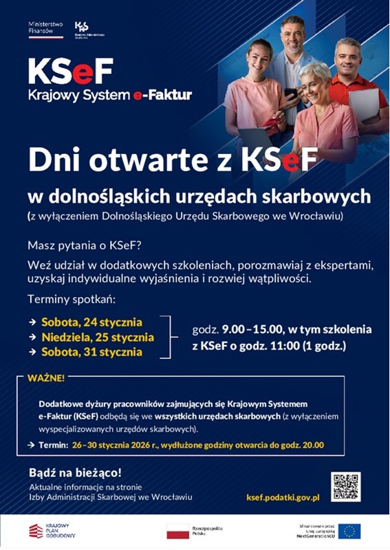 Urząd Skarbowy zaprasza mikro, małych i średnich przedsiębiorców na dni otwarte z Krajowym Systemem e-Faktur, które odbędą się 24 i 25 stycznia, czyli w sobotę, i niedzielę oraz 31 stycznia 2026. Urzędnicy zapraszają w godz. 9.00-15.00 do wszystkich skarbówek z wyjątkiem tych wyspecjalizowanych.